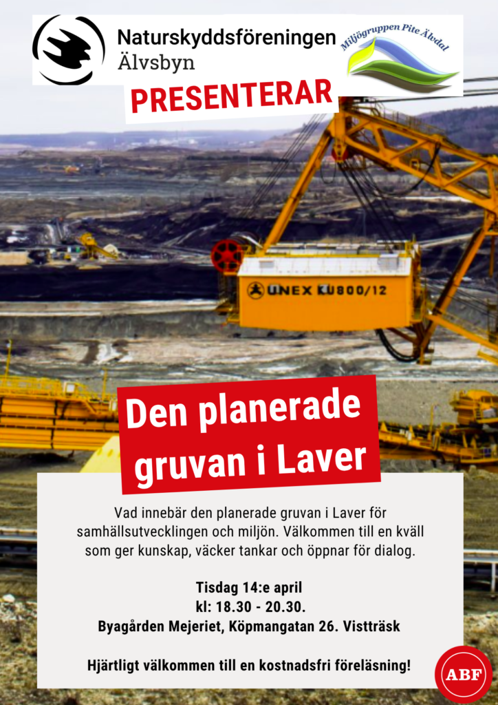 Vad innebär den planerade gruvan i Laver för samhällsutvecklingen och miljön. Välkommen till en kväll som ger kunskap, väcker tankar och öppnar för dialog.