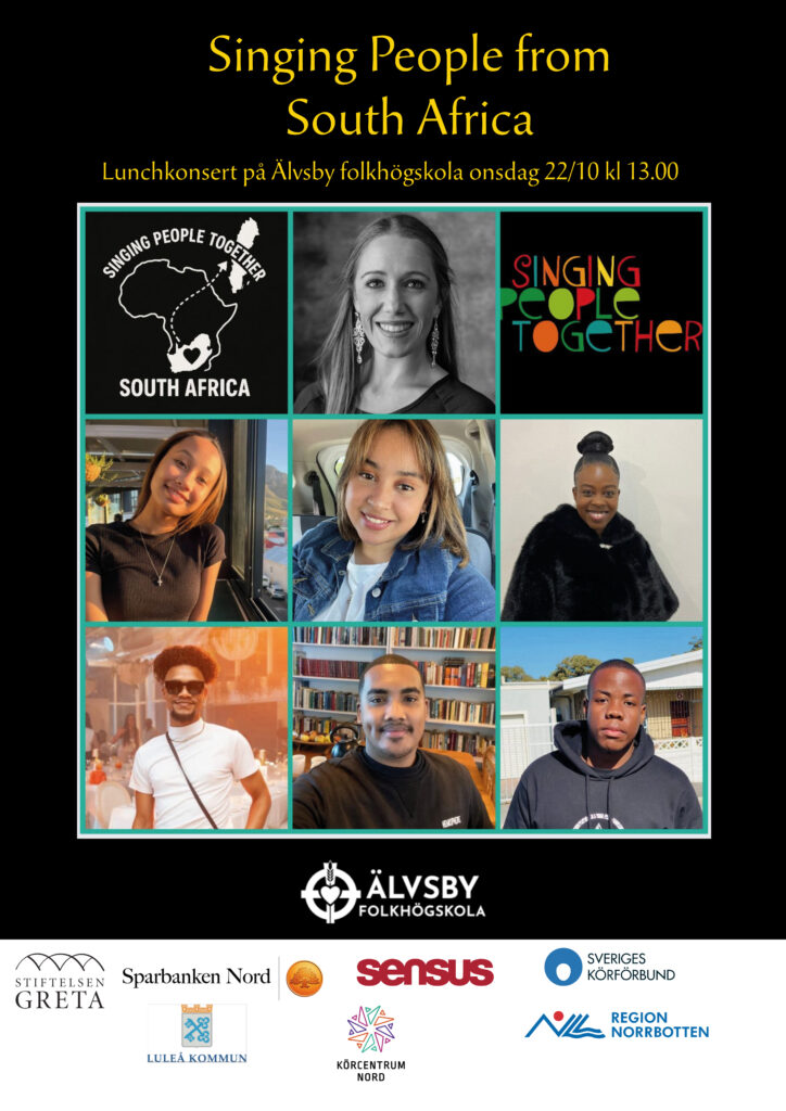 Välkommen på lunchkonsert med Singing People from South Africa, en grupp av musikstuderande från Kapstaden och deras ledare operasångerskan Christine Bahm. De sjunger traditionella sånger på lokala språk som Xhosa, zulu och Africaans.